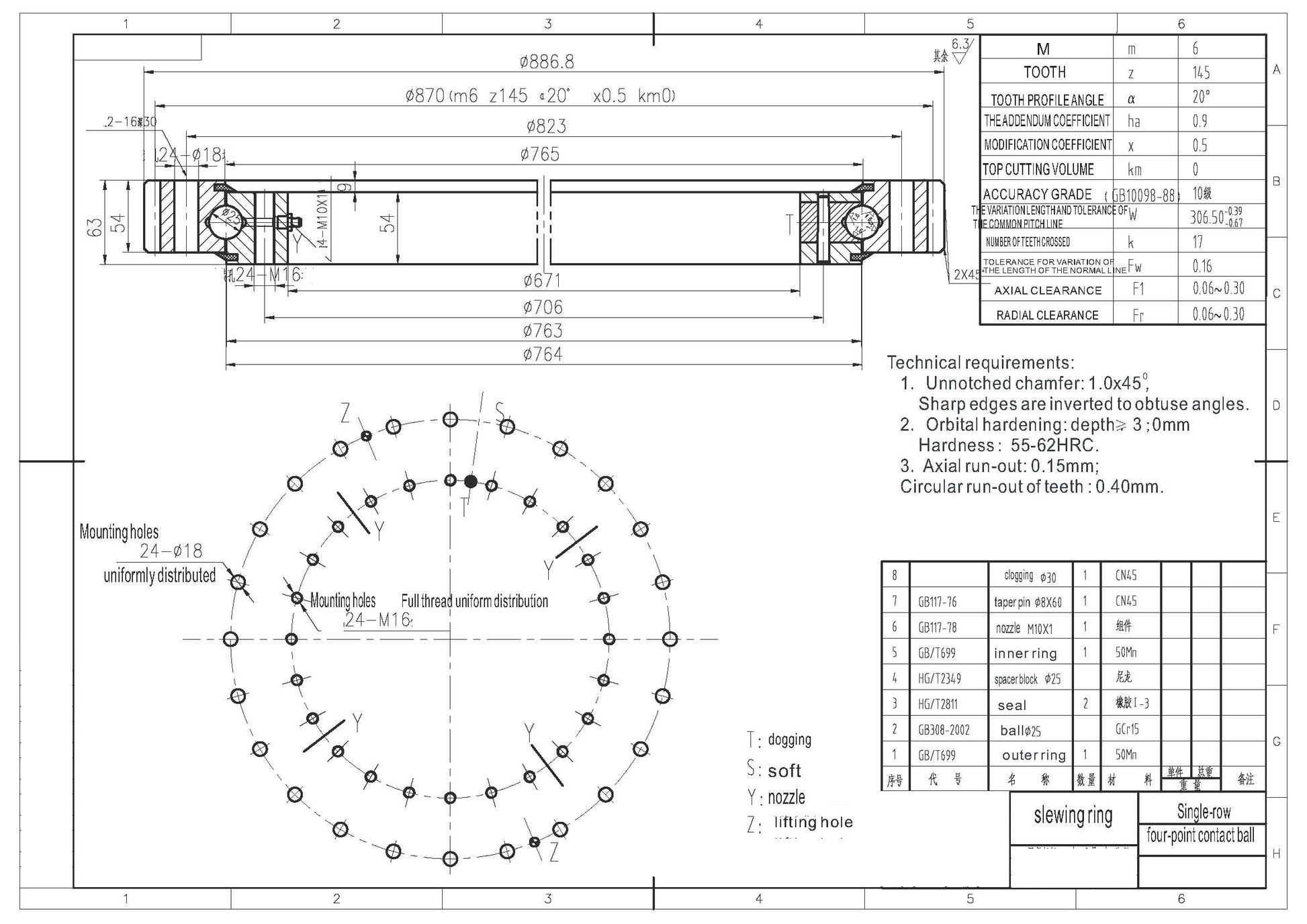 26 Inch Four-Point Contact 671x886.8x63 mm Ball Slewing Ring Bearing with Outside Gear